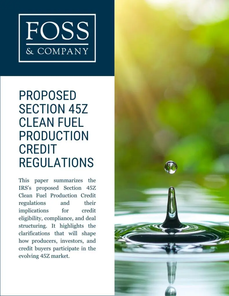 Download the paper to understand what the proposed regulations mean for clean fuel producers, investors and credit purchasers, including how Foss & Company is applying this guidance in active 45Z transactions as the market moves toward scale.